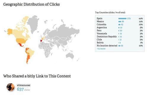 Puedes acceder a bit.ly a través de su web, extensiones de Chrome o móvilPuedes configurar tu Tweetdeck con bit.ly para que todos tus URls se acorten automáticamente con tu cuentaTe permite personalizar tu URL acortada después de bit.ly/Puedes agregar tu propio dominio corto para tener un acortador totalmente personalizadoPodéis agregar notas a cada URls acortadaOfrece reportes gratis de los clics, aquí os dejo un ejemplo de las estadísticas que tenéis disponible